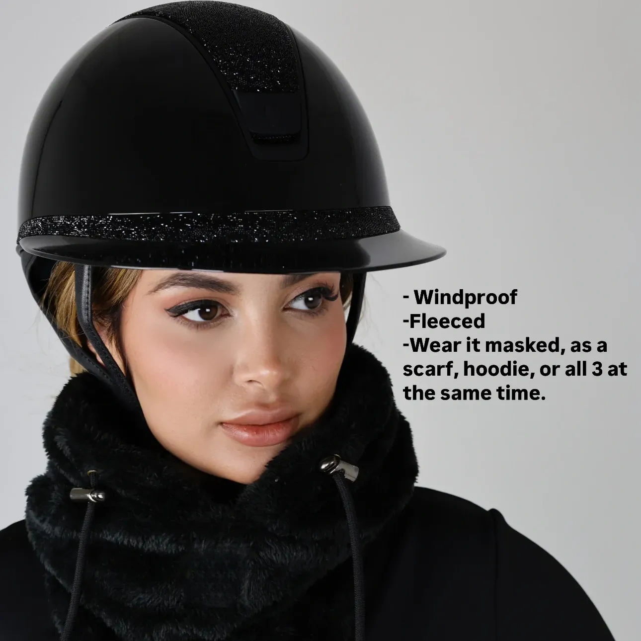 Wear it as a hoodie and scarf for chores, a scarf and mask combo for face protection, or pull it over your helmet for full coverage. It also works perfectly as a cozy everyday scarf.