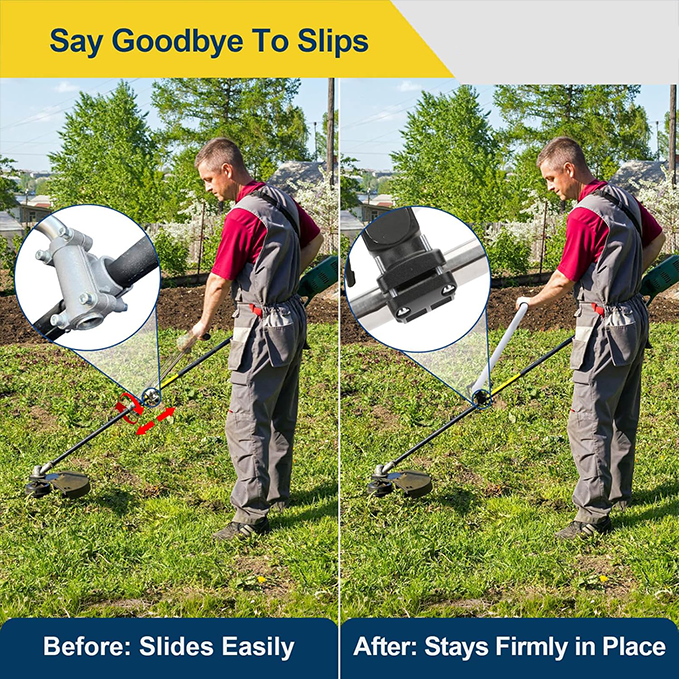 Equipped with a user-friendly adjustable clamp that securely fits poles with diameters from 22mm to 28mm, ensuring compatibility with a wide range of lawnmower models.