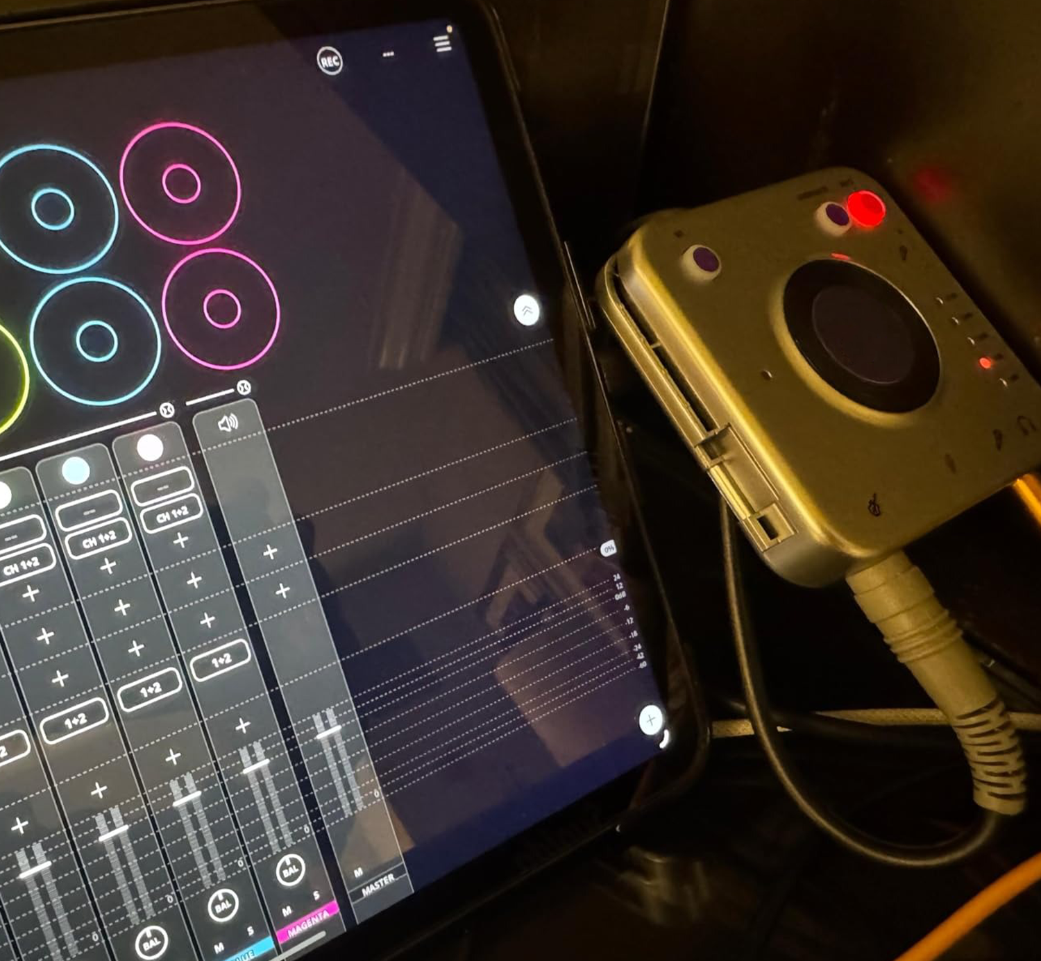 Connect to a second mobile device with one click for wireless backing tracks—perfect for live sessions and content creation.