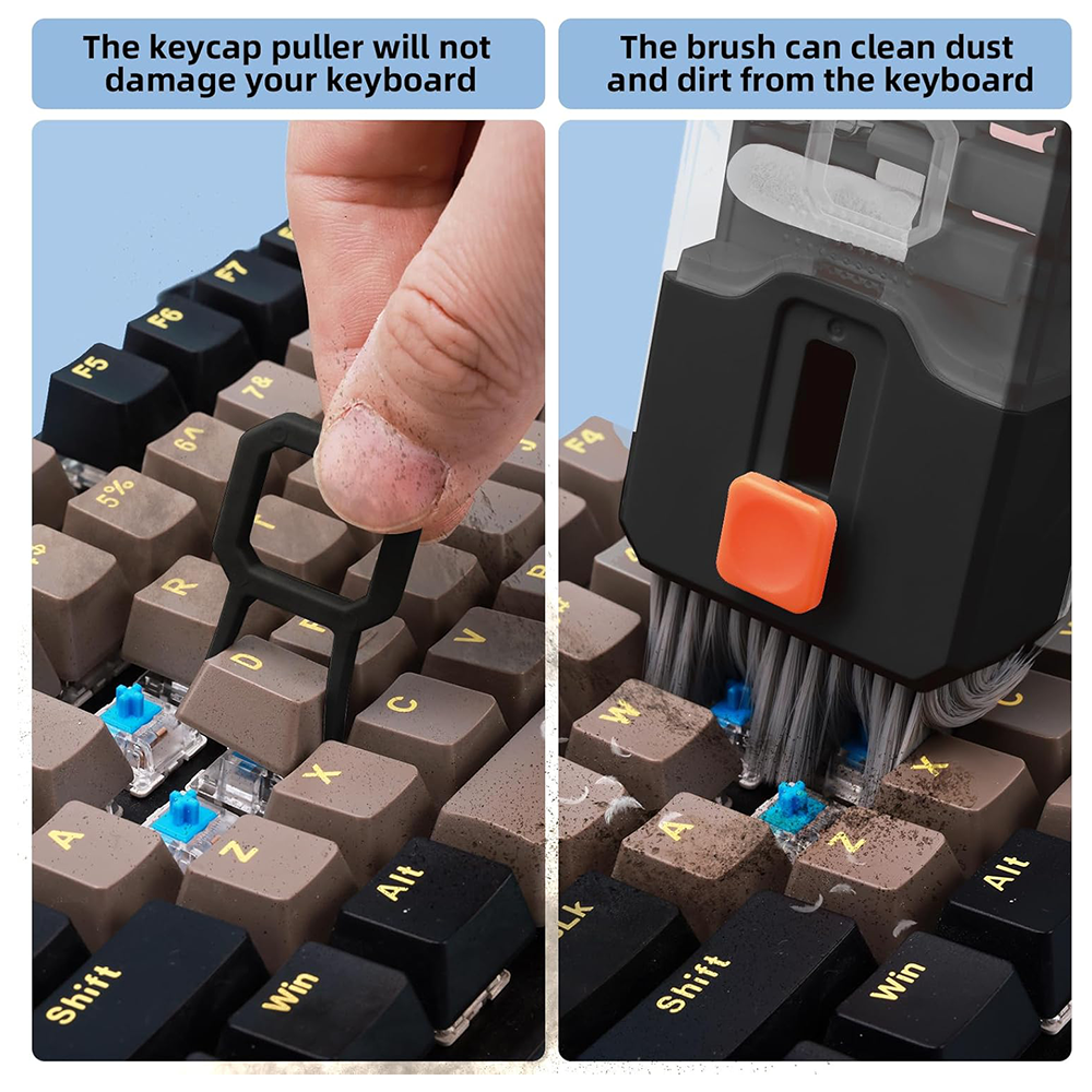 Combines multiple cleaning tools and accessories into a compact kit suitable for laptops, keyboards, phones, tablets, cameras, and other electronics.