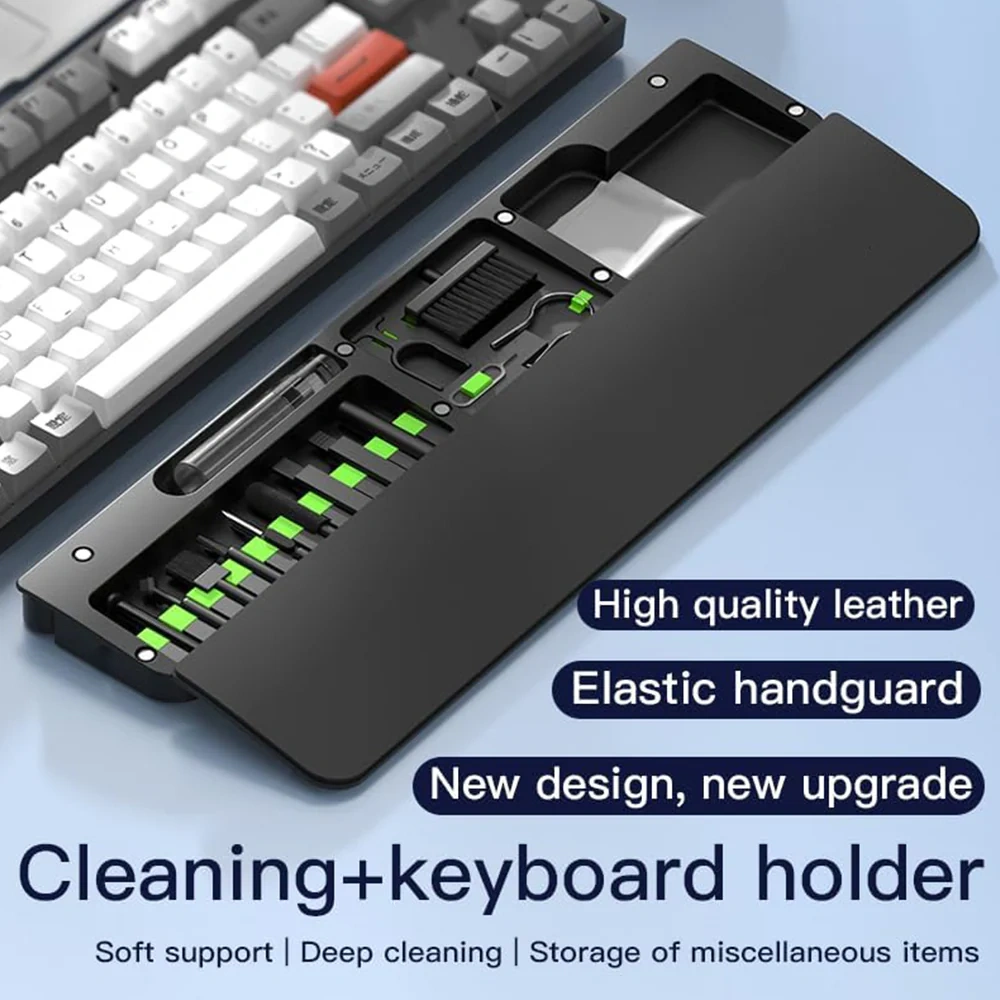The Keyboard Wrist Rest & Multi-Functional Tool Kit is a premium, all-in-one workstation accessory designed to elevate ergonomic comfort and device maintenance. It seamlessly integrates a plush, supportive wrist rest with a comprehensive 22-piece professional cleaning toolkit. This product transforms your desk into an organized, healthy, and efficient workspace, providing essential relief for your wrists during long computing sessions while equipping you with everything needed to keep your keyboard, phone, headphones, and other gadgets in pristine condition.