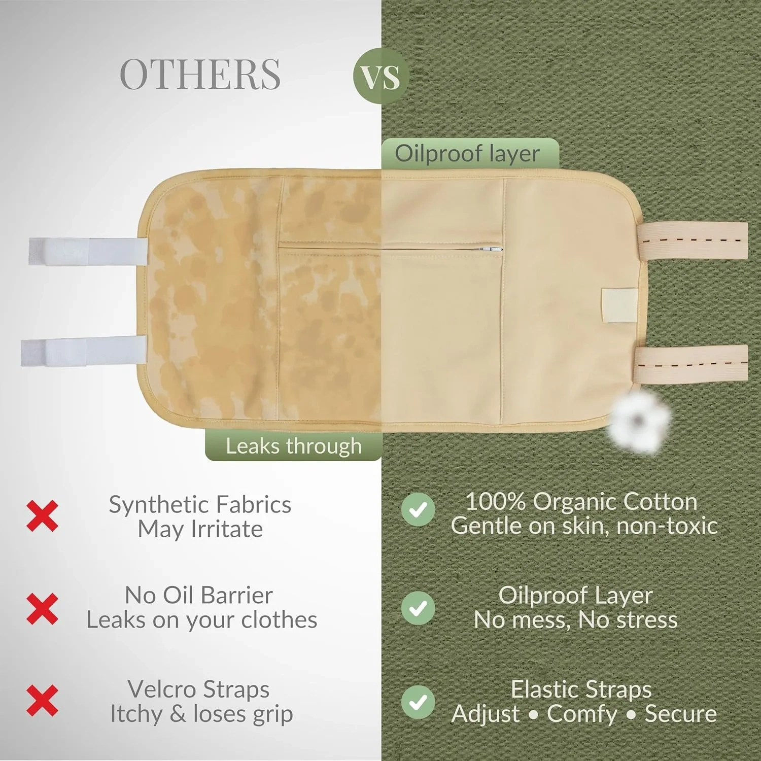 Each castor oil pack features a soft velvet outer layer and organic cotton inner layer. The built-in leak-proof layer effectively prevents castor oil from leaking, keeping clothes and bedding clean. The adjustable straps ensure a snug and secure fit, providing a customized and comfortable experience.