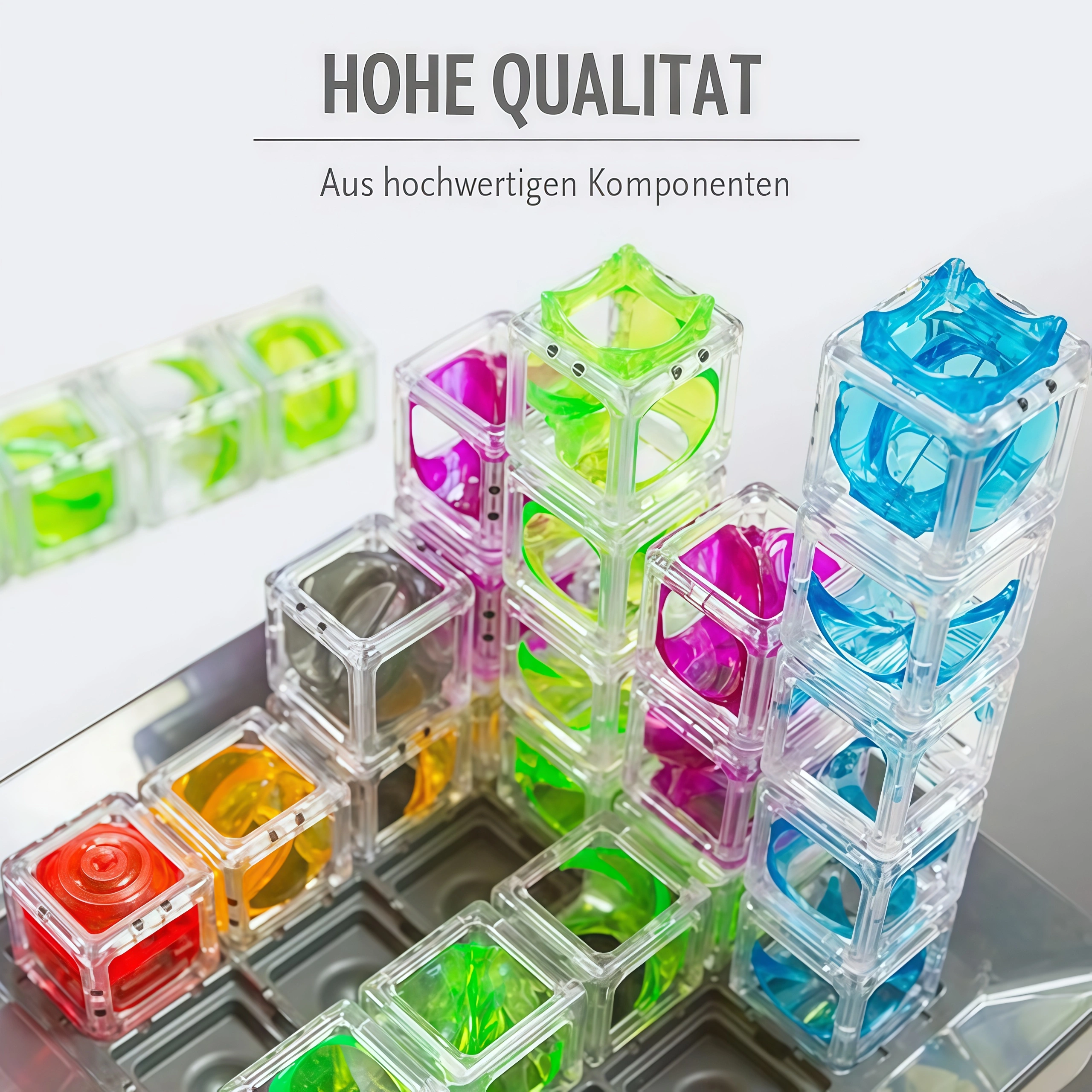 Modular plastic pieces allow children to construct endless maze configurations, encouraging creativity and experimentation.