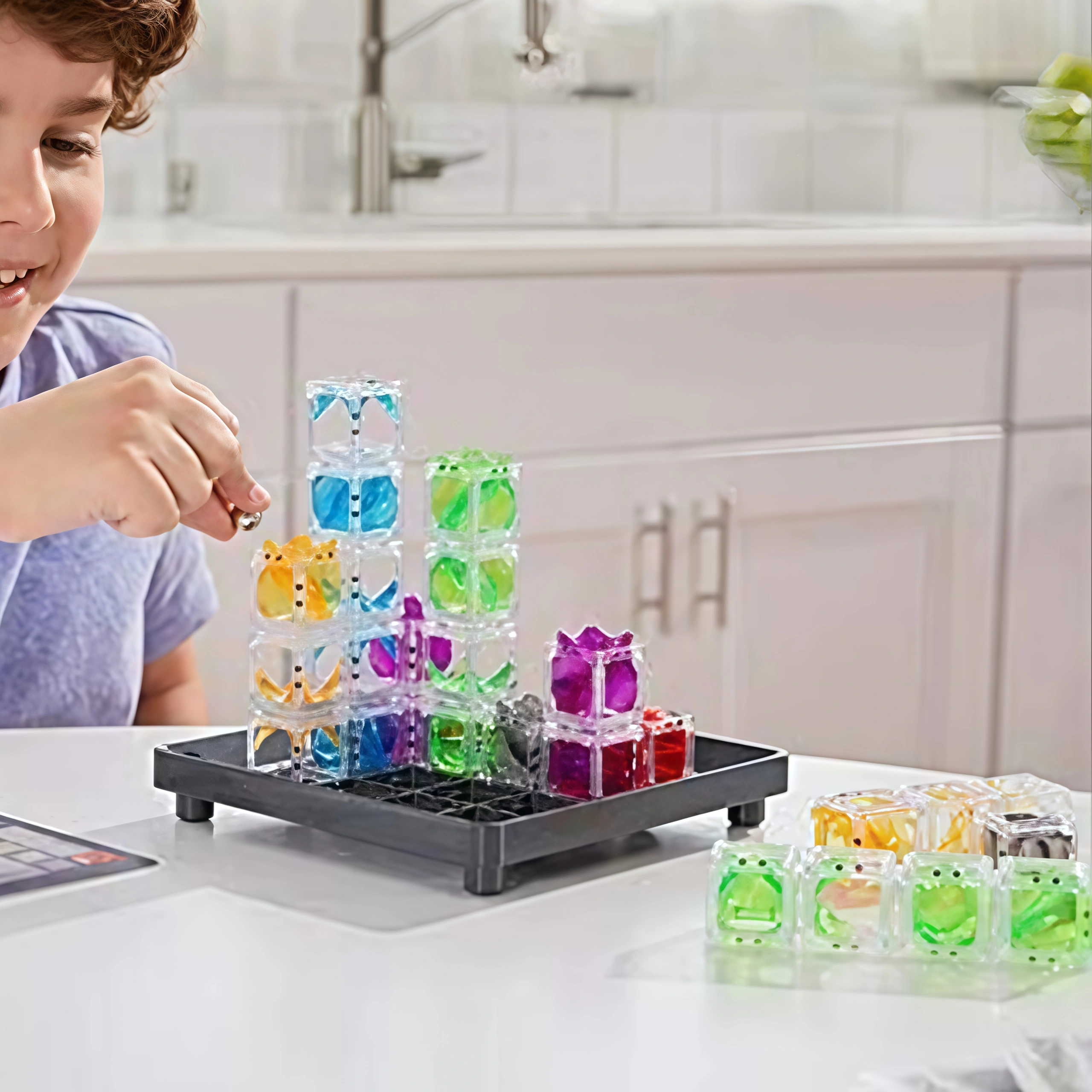 Marbles move through the maze using only gravity, helping children understand physical principles while solving puzzles.