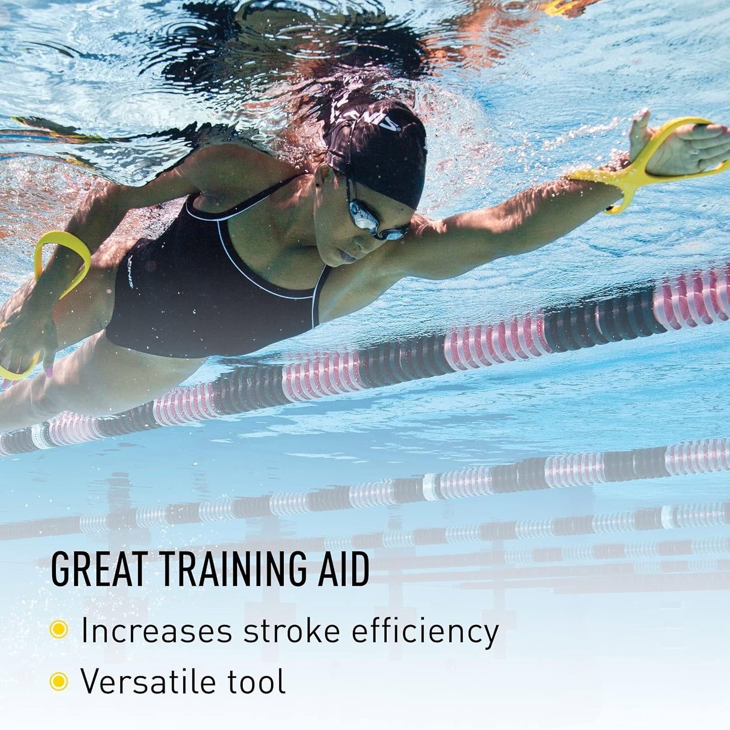 Improves hand and forearm positioning for freestyle, butterfly, backstroke, and breaststroke.