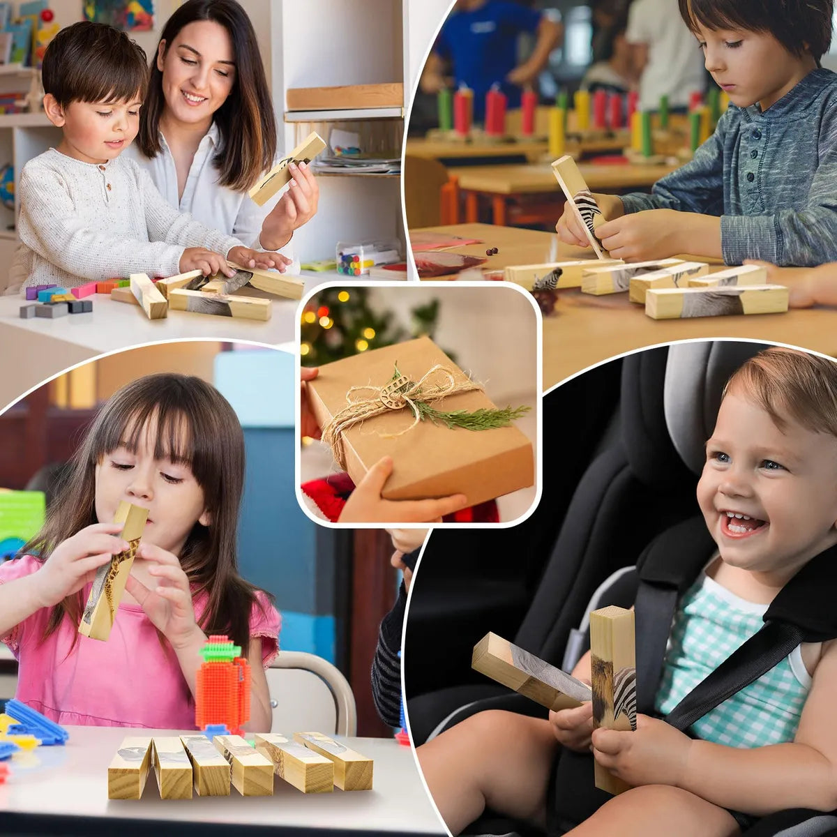 • Wooden Puzzle Blocks × 6